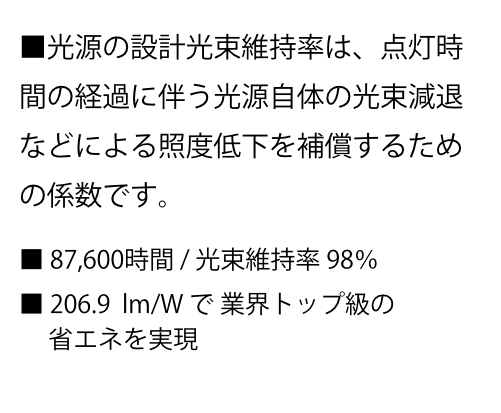 業界トップクラスの高効率. 206.5 lm/Wを実現