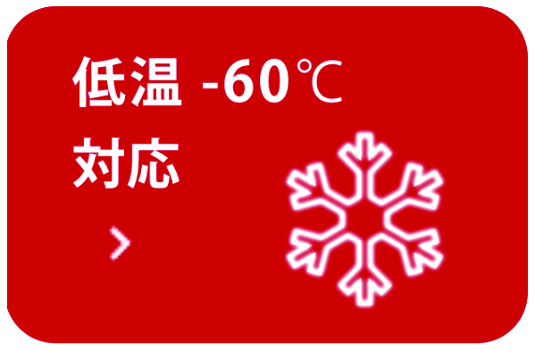 -60℃の低温環境まで対応。使用温度範囲が広く、