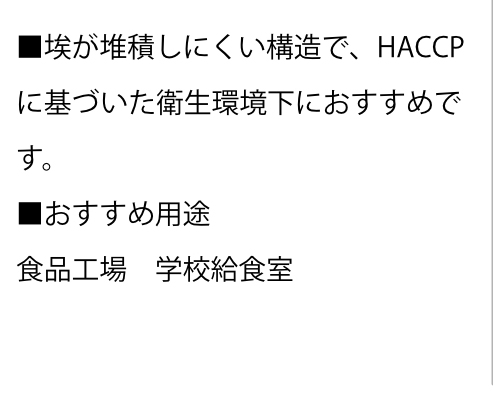 埃が堆積しにくい構造、HACCPに基づいた衛生環境下におすすめ