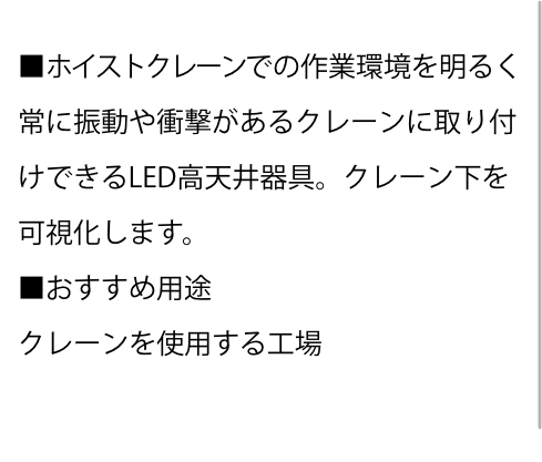 常に振動や衝撃があるクレーンに取り付けできるLED高天井器具。