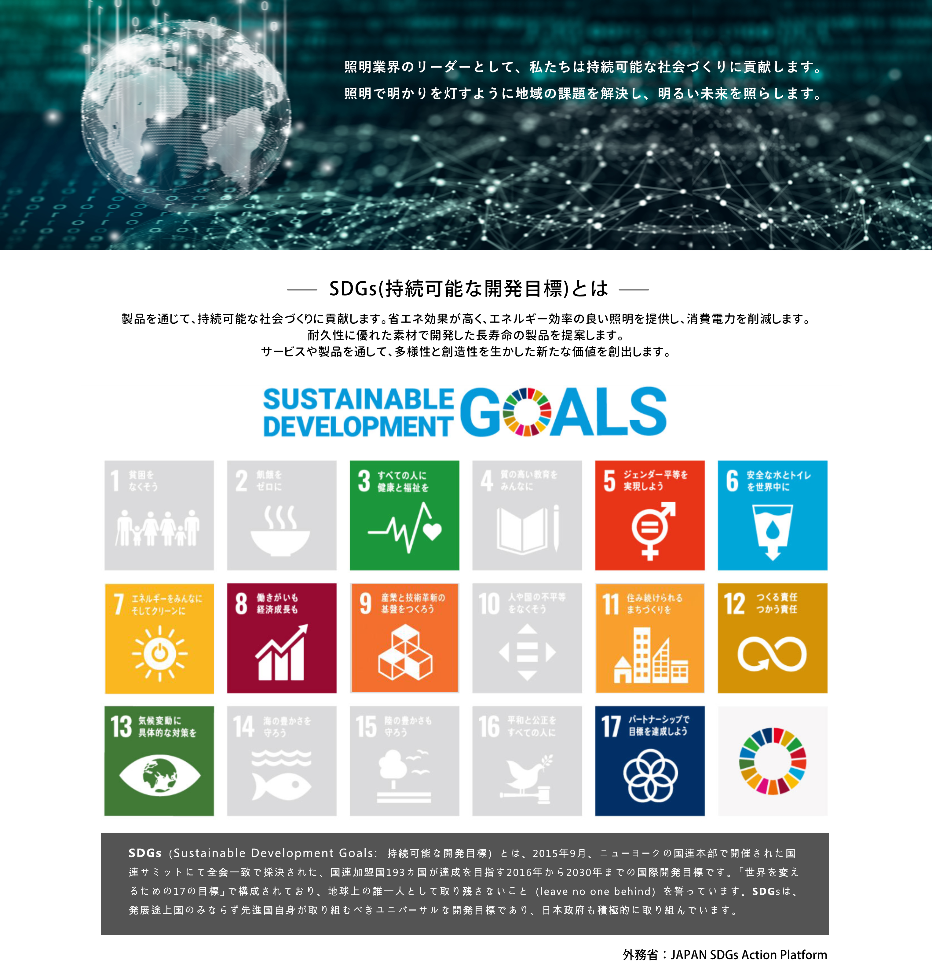 照明業界のリーダーとして、私たちは持続可能な社会づくりに貢献します。