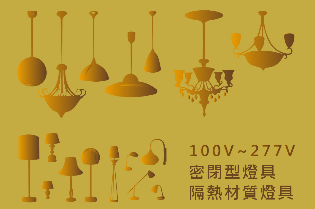 適用於各種燈具,特別是在密閉型燈具以及隔熱材質燈具,也都能良好發揮,使用電壓100V~277V,電壓不穩時也能正常運作。