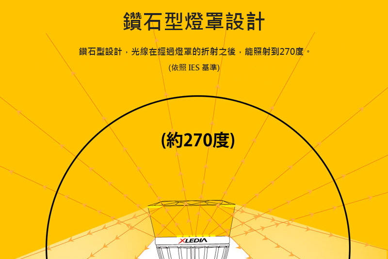 新設計的全方向配光,使用專利燈罩,以特殊透鏡效果充分利用光線。既能照亮燈具,照度也比他廠牌更高,照明效果更好。