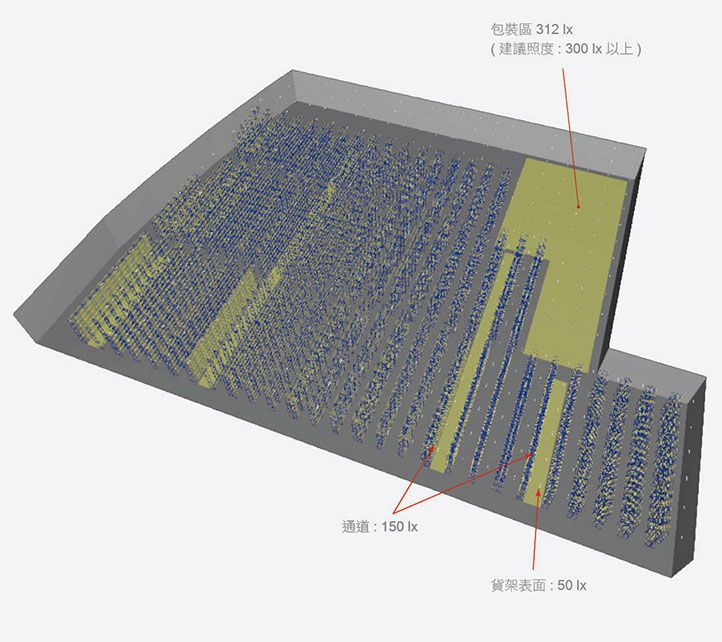 倉庫開燈作業 24 小時,使用了480W 的 HID 燈具共 210 組。