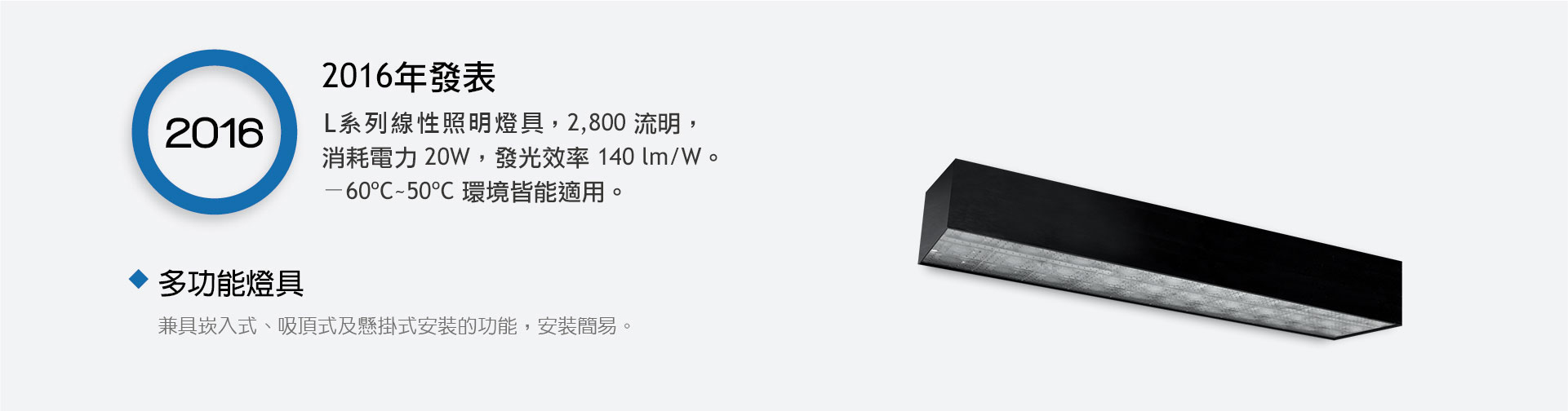 - 發光效率達 140 lm/W. 可節省更多的能源。