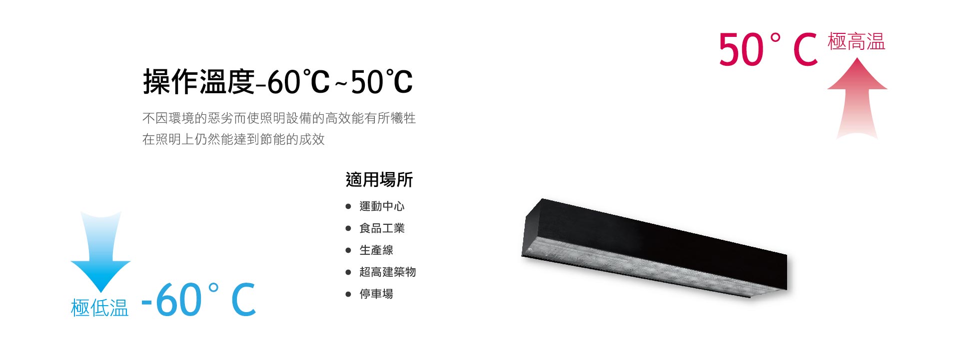 - 可使用作業環境 : -60℃ ~50℃。