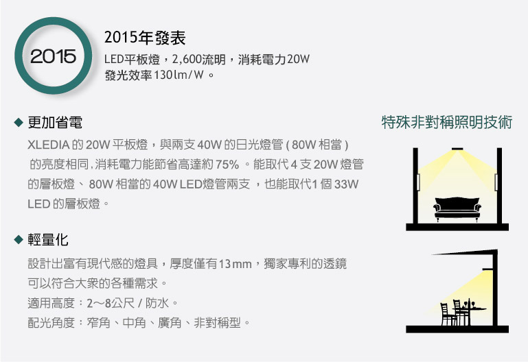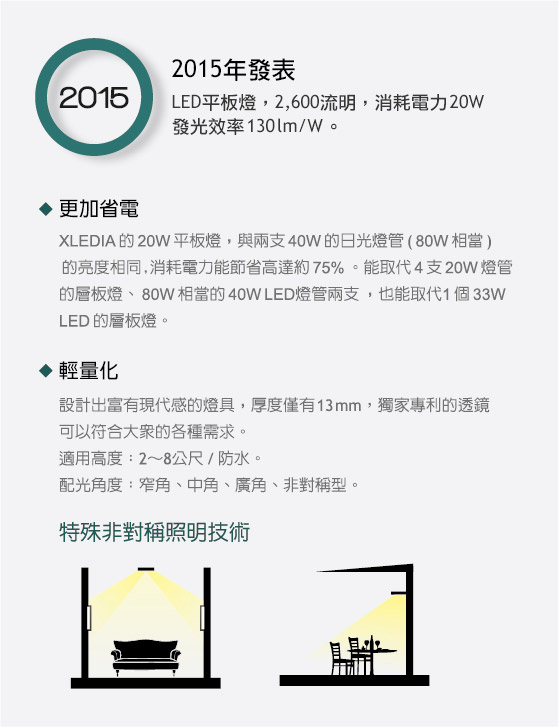 - 發光效率達 130 lm/W. 可節省更多的能源。